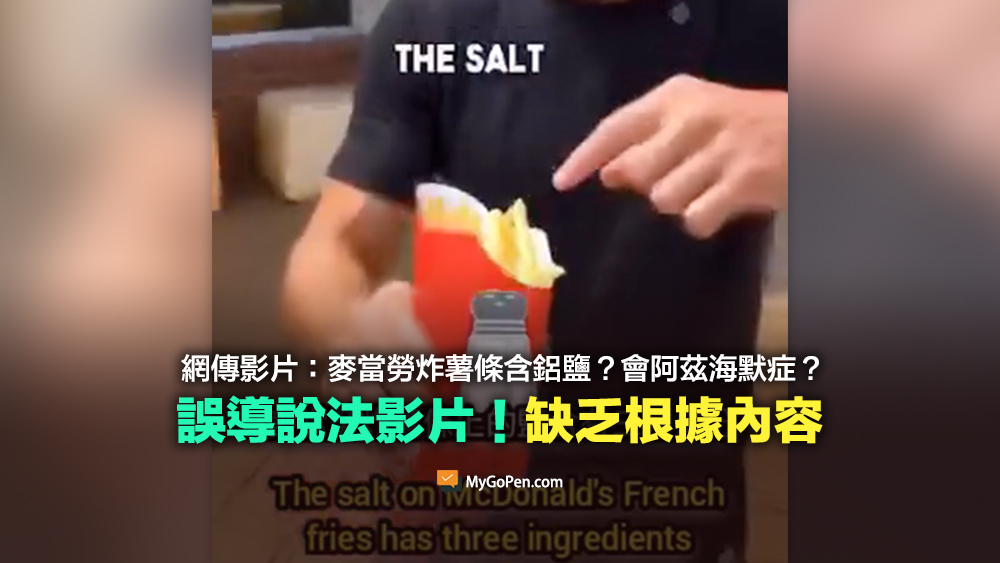 【錯誤】麥當勞炸薯條含鋁鹽的網傳影片?會阿茲海默症?缺乏根據內容