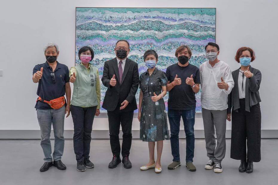 史哲(時任高雄市副市長/左三)於高美館《抽象高雄》展覽開幕式合影。圖/高雄市立美術館提供