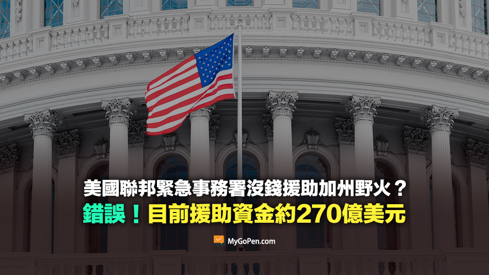 【錯誤】網傳美國聯邦緊急事務署沒錢援助加州野火?與事實不符!目前援助資金約270億美元