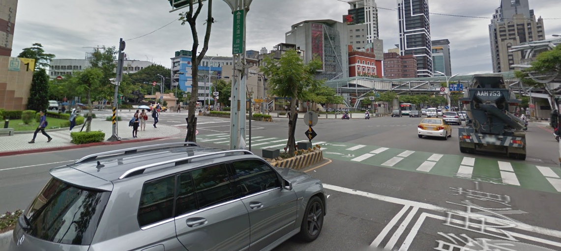 另外根據照片警察上方的路牌,可以看到英文有「sec 1」,判斷是某某某路一段,雖然放大模糊,但可以排除是三個字以上的捷運站,透過 Google map 街景比對後發現是捷運府中站。
