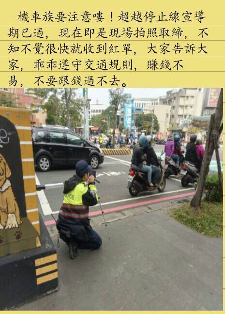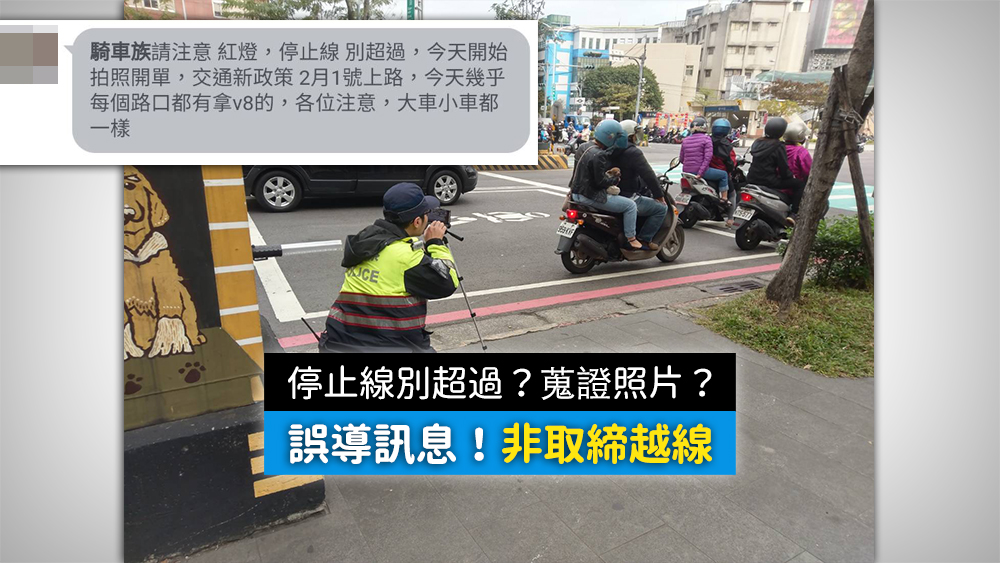 【假訊息】騎車族注意停止線別超過的照片訊息?警:非取締越線