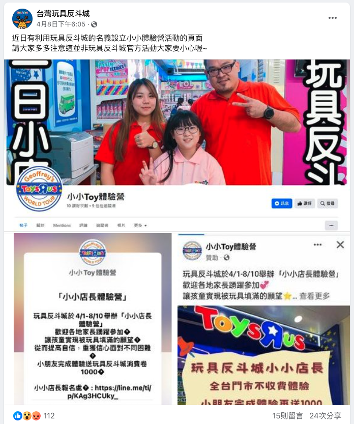 【詐騙】小小店長職人體驗營限動社群廣告?加LINE報名?冒名活動!家長當心