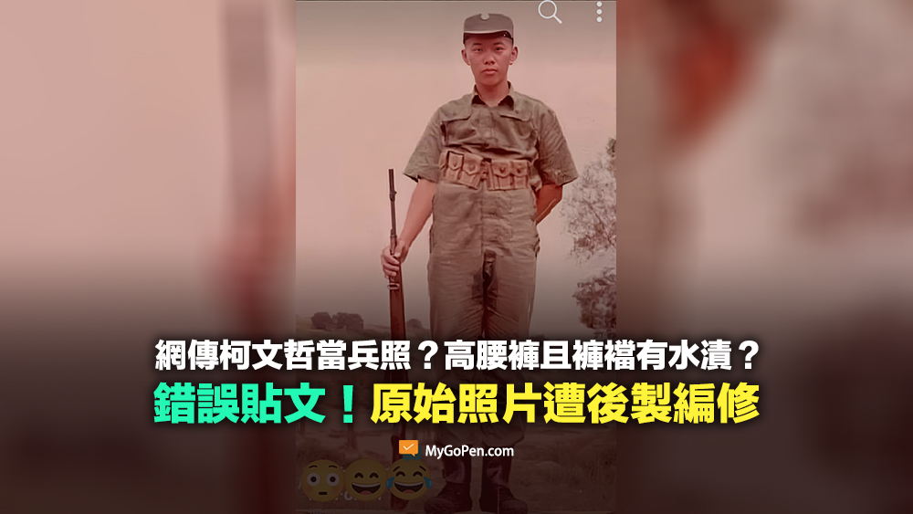 【誤導】網傳柯文哲當兵照?高腰褲且褲襠有水漬?照片經後製編修