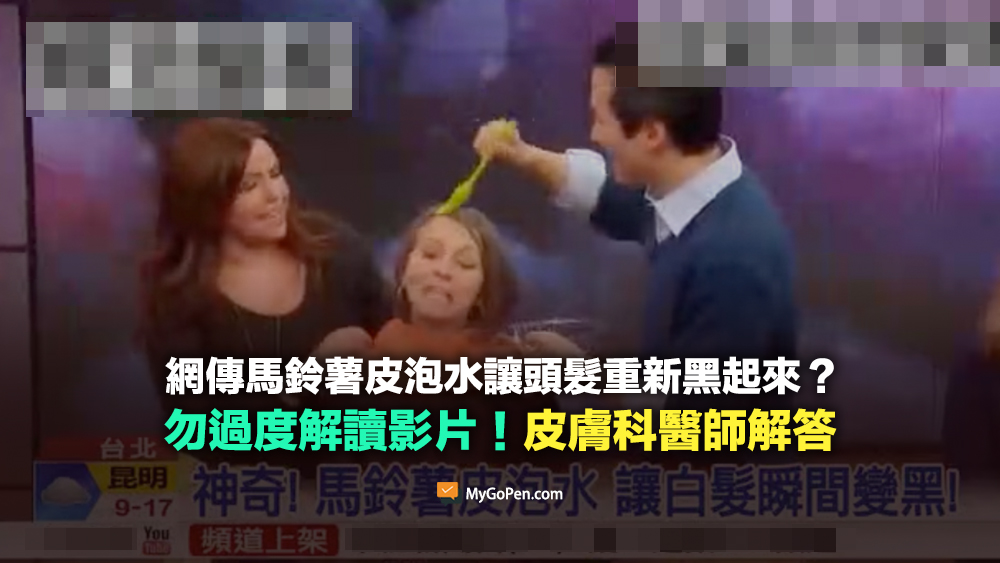 MyGoPen 致電諮詢皮膚科醫師趙昭明,他表示頭髮的染劑分為三種,暫時性、半永久性、永久性,傳言提到的方法,就是利用馬鈴薯氧化之後的變色,去達到染色在頭髮上的效果,就像蘋果削皮氧化之後顏色變深一樣,都是利用氧化反應而已;趙昭明表示,明白氧化的道理之後,就能理解影片中的馬鈴薯皮水的限制性,實驗是在淺褐色的頭髮上,使用馬鈴薯皮的水之後變成較深的褐色,同樣的操作用在白髮上,可能能讓白髮變灰,但能否變成黑則不無疑問,傳言影片中字卡「白髮自然變黑」易造成誤導。