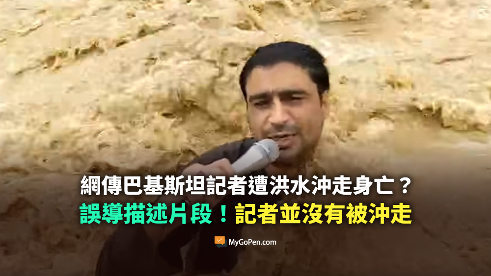 【錯誤】網傳巴基斯坦記者遭洪水沖走身亡?誤導描述片段!並沒有被沖走