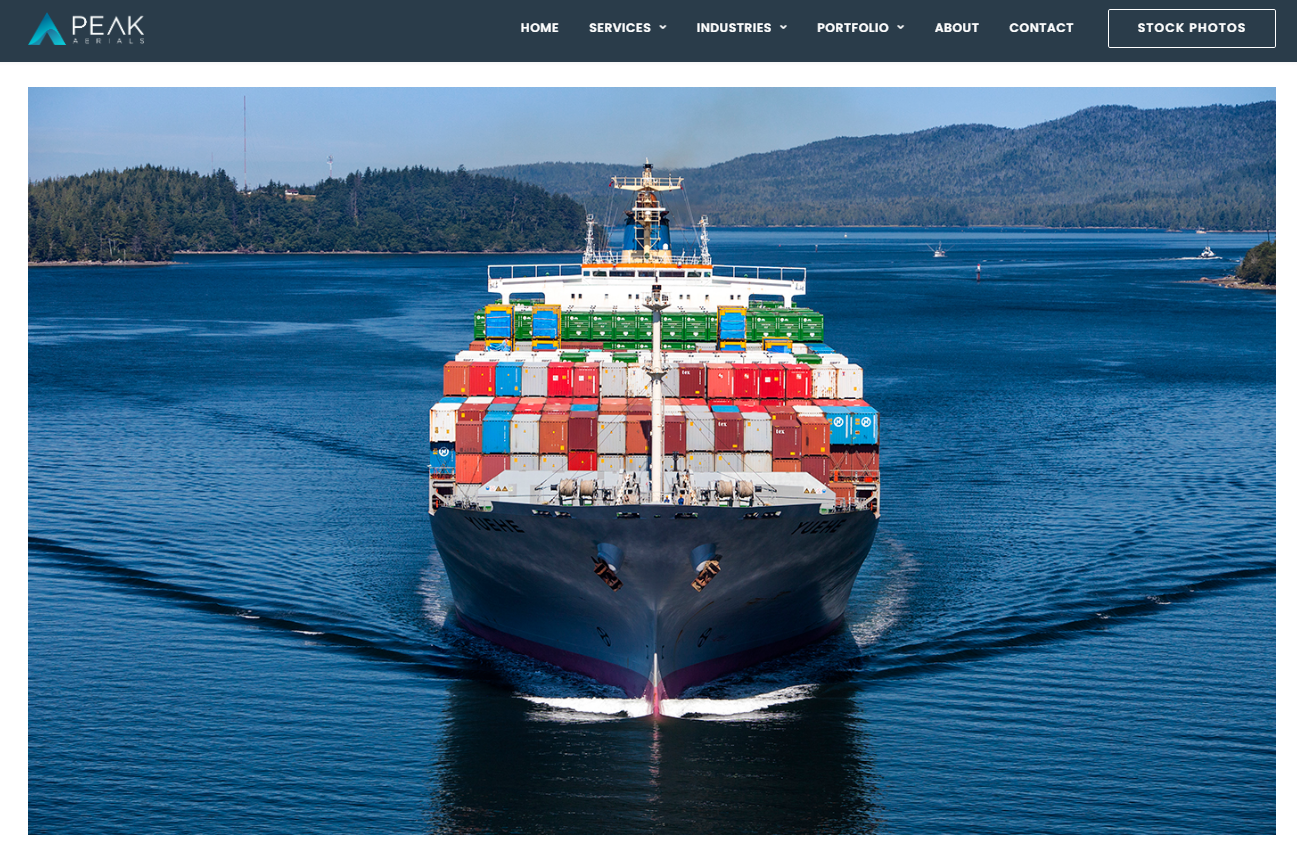 (三)網傳的另一個版本則可以明顯看到船隻上方有懸掛中國五星紅旗,透過 Yandex 瀏覽器反搜,初步查找到航空攝影網站「Peak Aerials」上有不同角度的照片,比對貨櫃的排列順序可以確定是同一艘船。