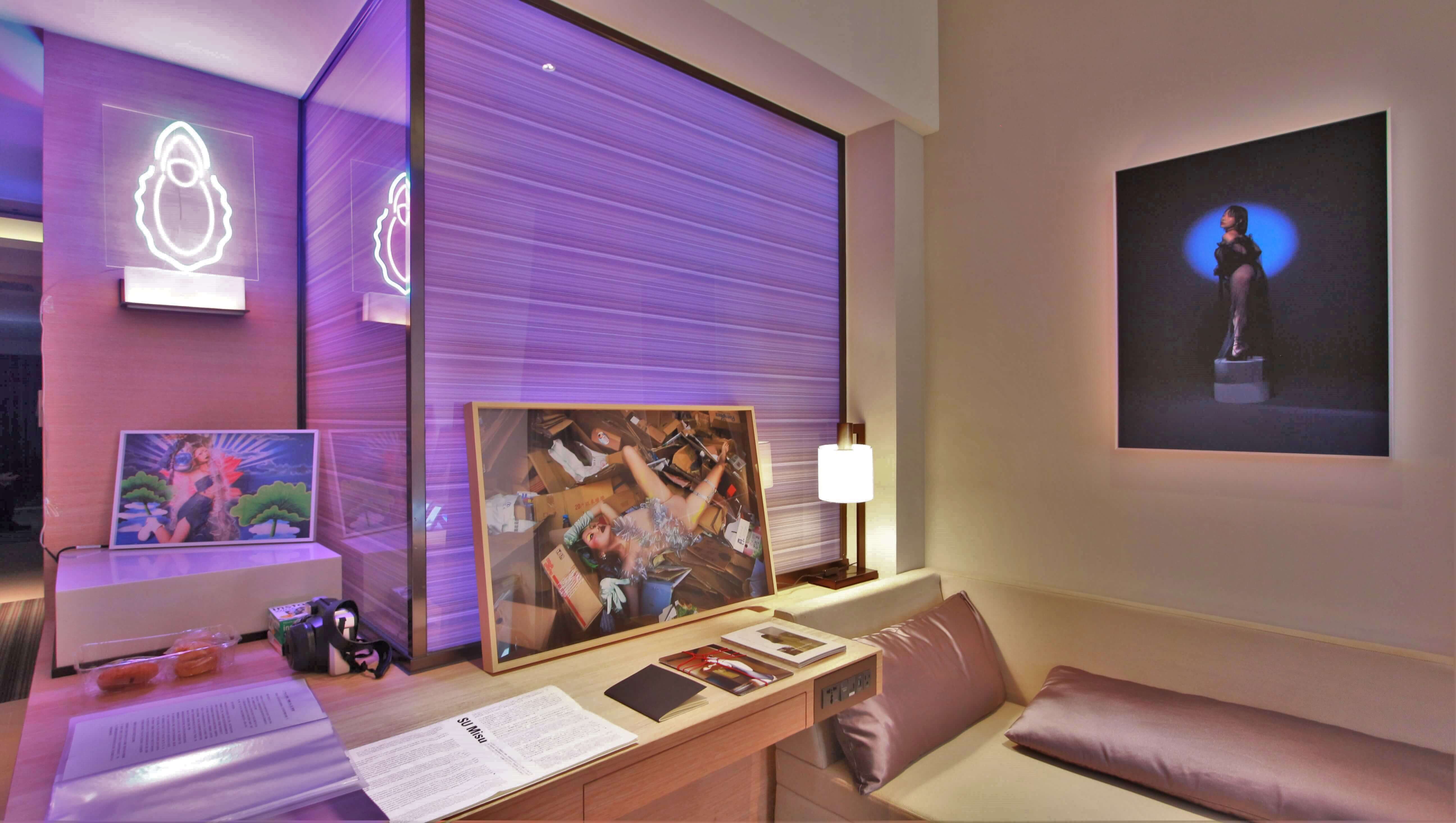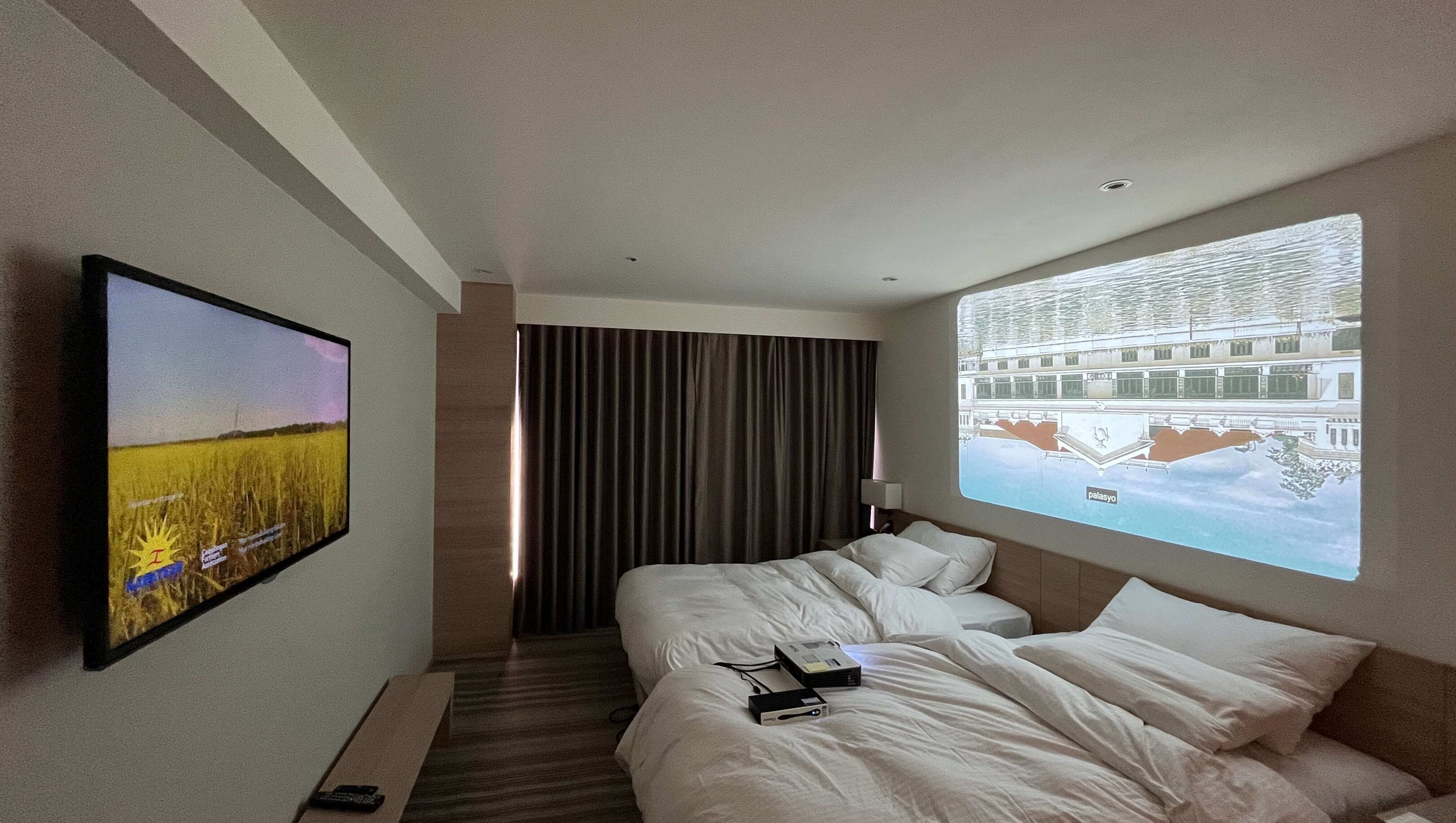 值得關注的是,在FLAME TP之前,台灣錄像藝術品的展出大多是在設定好的空間(無論室內或室外)。多數的藝術家們在創作中也會習慣將「如何運用 / 改造白盒子?」納入考量。然而在飯店藝博會的形式中,需要與既定(而且不大能改動)的客房相互配合。在這樣的條件下,展間的運用成為了有趣的實驗與挑戰。這樣子的訴求讓作品呈現出一種「更接近生活」的狀態,面甚至激盪出了新的感受層次。