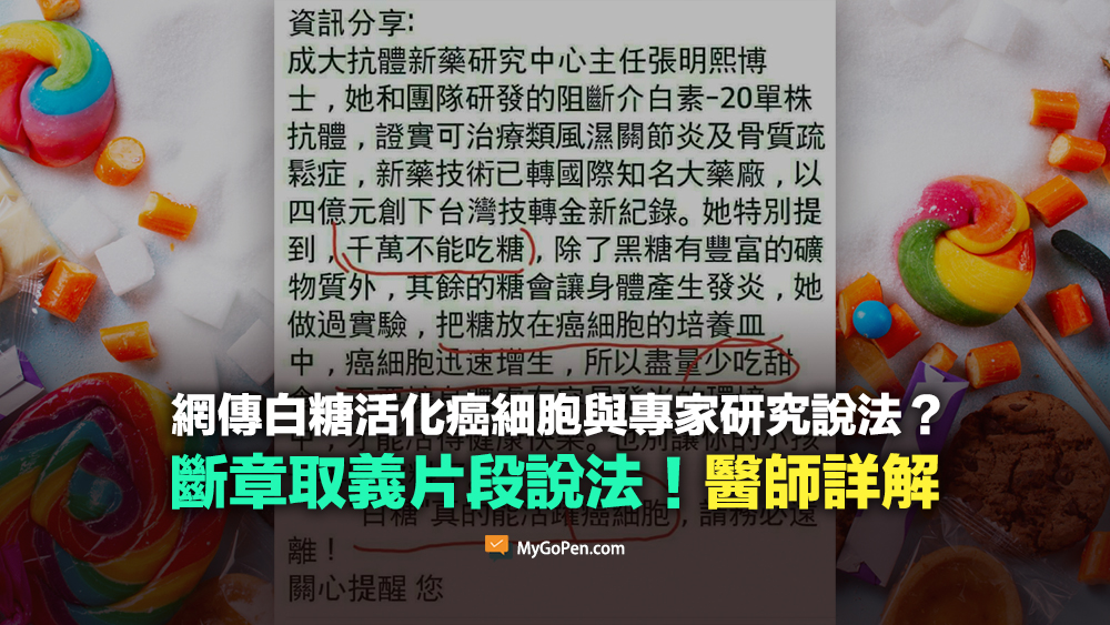 【誤導】網傳白糖活化癌細胞與專家研究說法?斷章取義!醫師詳解