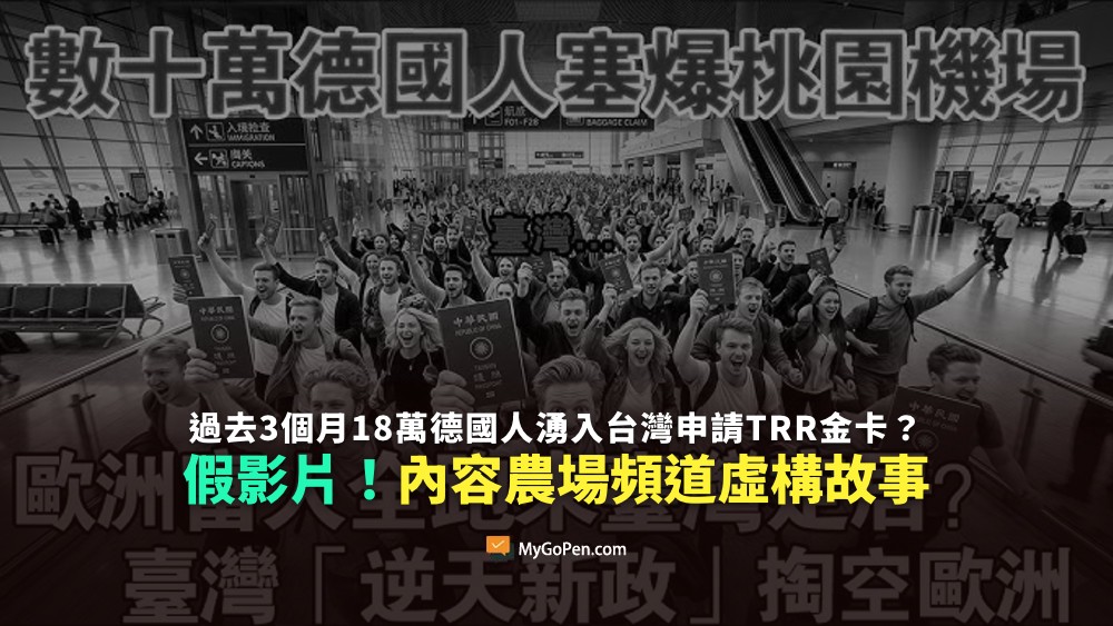 【錯誤】過去3個月18萬德國人湧入台灣申請TRR金卡?內容農場頻道虛構故事影片
