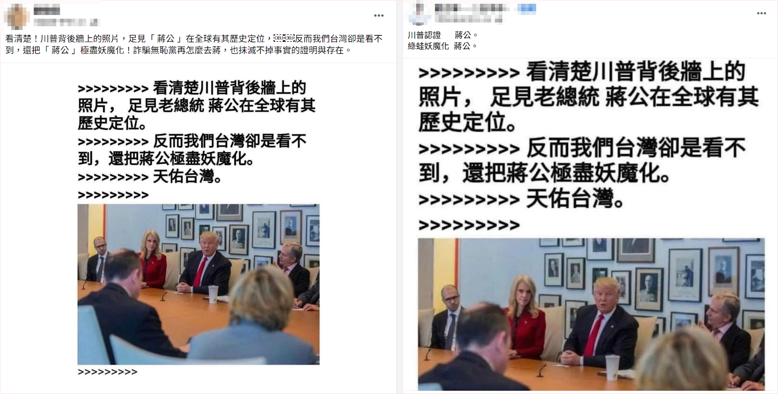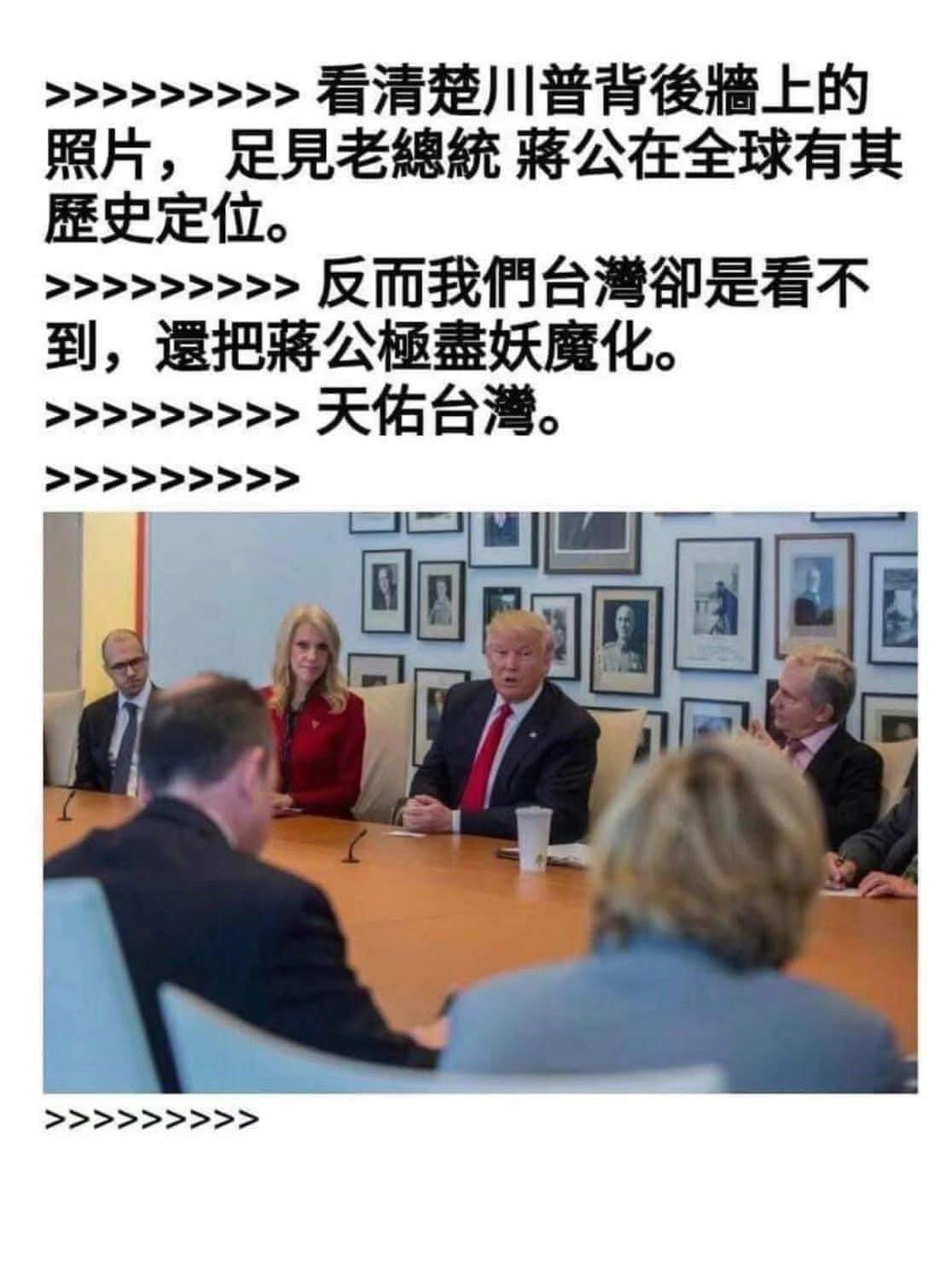 川普背後牆上的照片?認證蔣公?