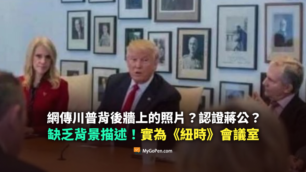 【誤導】網傳川普背後牆上的照片?川普認證蔣公?缺乏背景描述!實為《紐時》會議室
