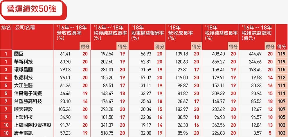 檢視《天下雜誌》「兩千大企業調查」的「營運績效50強」,今年榜單有不少驚喜。幾家老字號企業如同吃了威而鋼,重拾年輕時的業績爆發力。
