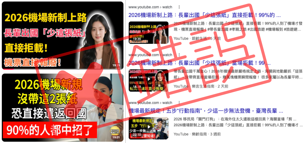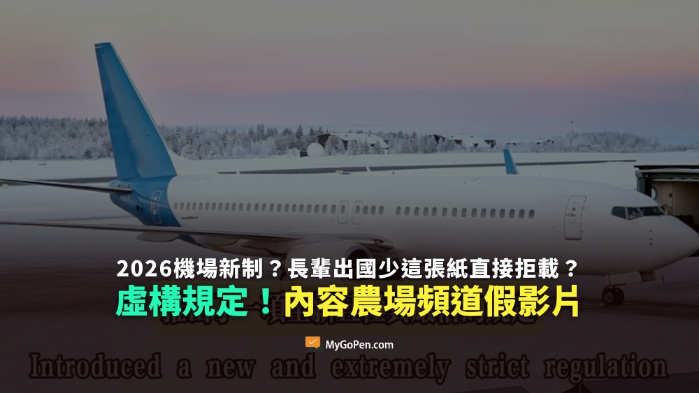【錯誤】2026機場新制?長輩出國少這張紙直接拒載?虛構規定!內容農場頻道AI假影片