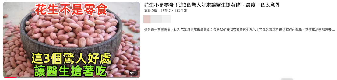 傳言第三部分提到「花生富含鈣、鎂等礦物質,能維持骨骼健康」。MyGoPen 也提出過相關查核報告「【錯誤】吃花生驚人好處?補充鈣質維持骨骼健康?誤導觀念影片!專家詳解」。
