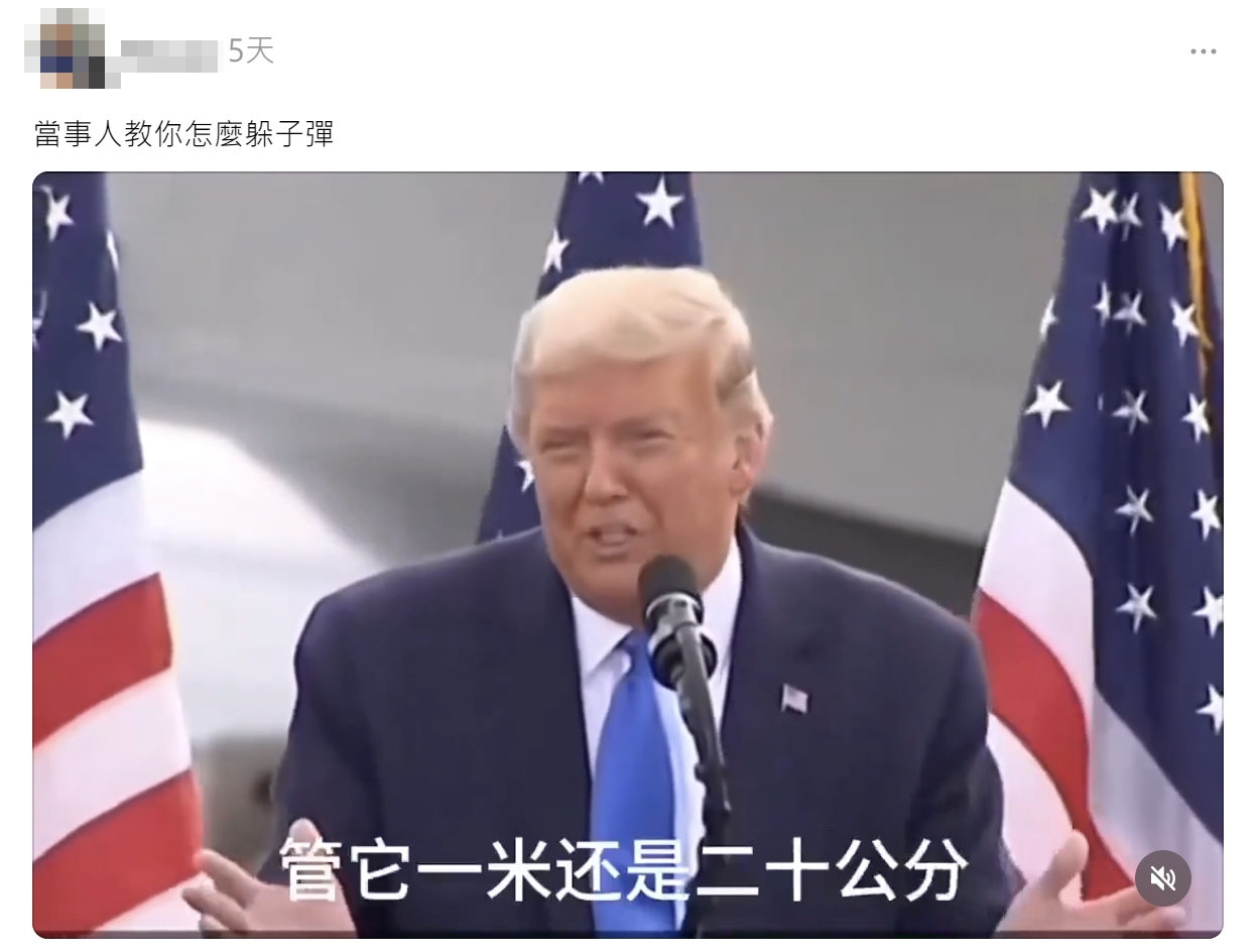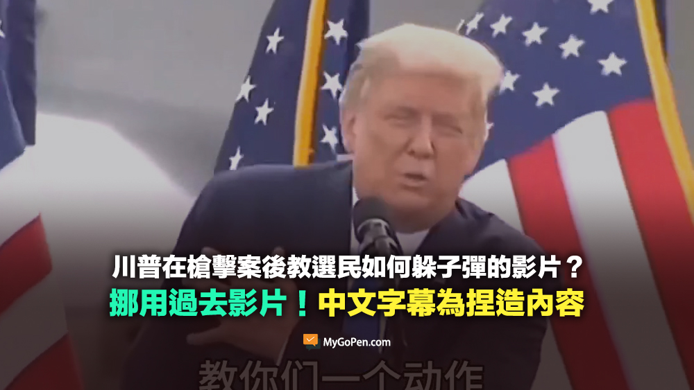 【錯誤】川普在槍擊案後教怎麼躲子彈?挪用過去影片!中文字幕為捏造內容