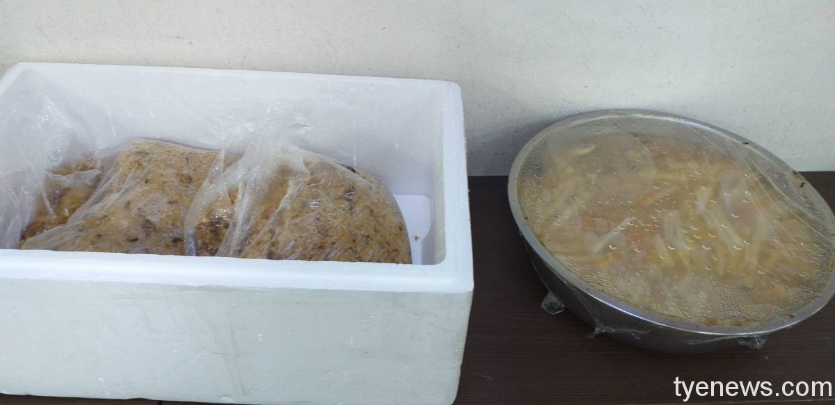 黃太太母子特別準備油飯及肉羹湯到青溪派出所,希望藉此表達感謝之意。圖:邱怡芳翻攝