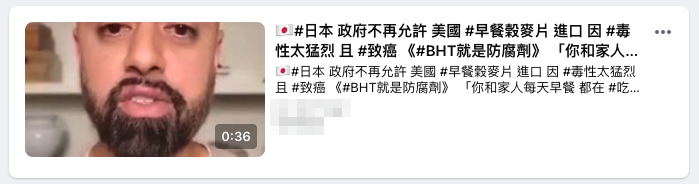 【錯誤】日本不允許美國早餐榖麥片進口?因BHT成分致癌?誤導影片