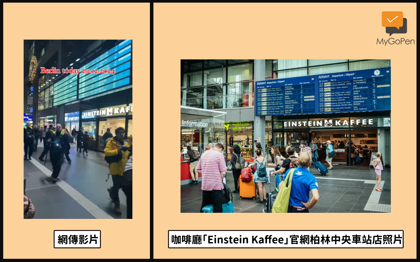 他們在柏林中央車站也確實有分店,比照官網資料,其營業時間為每天早上 6 時到晚上 8 時;而官網的營業據點中,柏林中央車站店的外觀照片也和網傳影片畫面相符。由此可確認,傳言影片的拍攝地點是在柏林中央車站無誤。