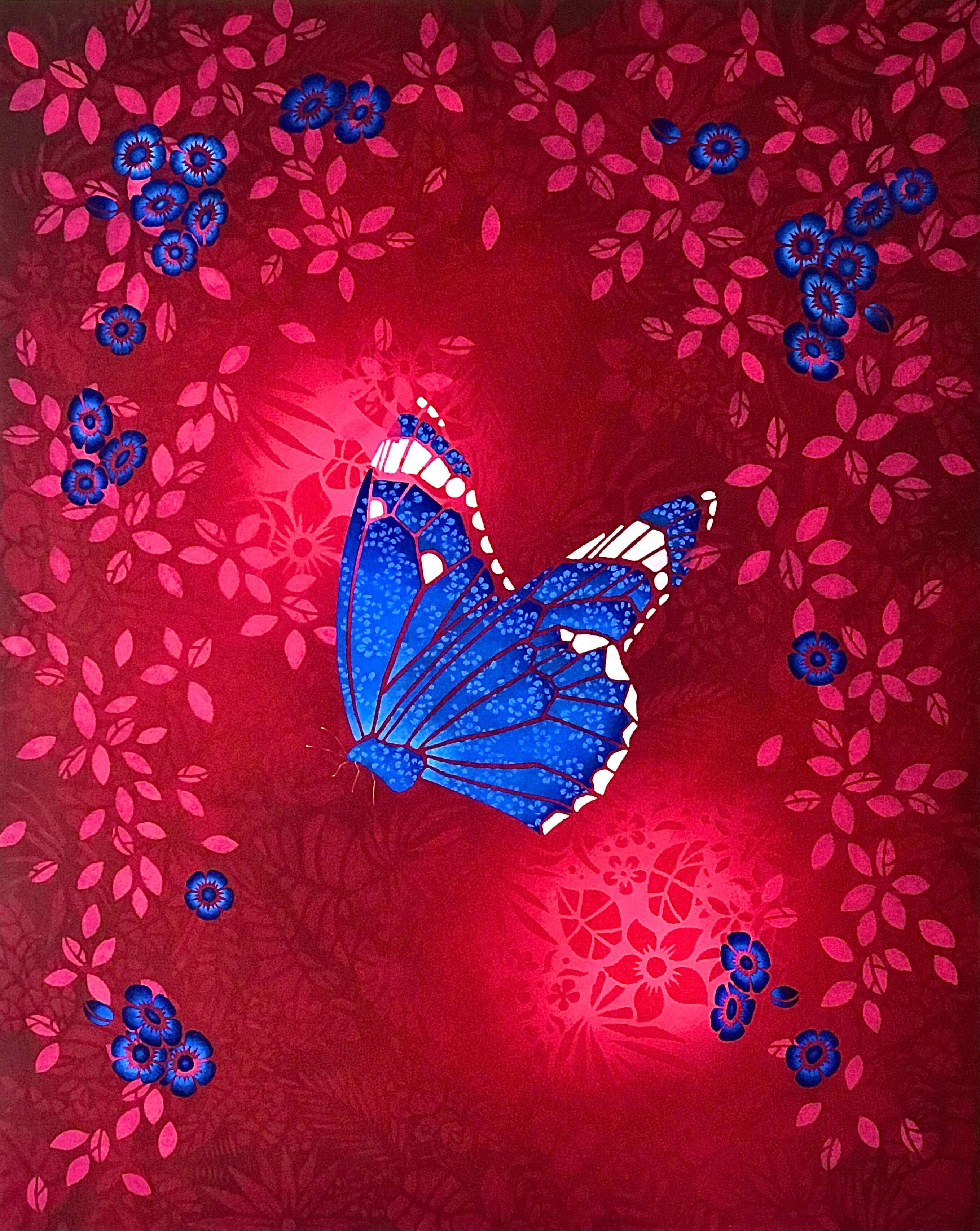 安德里亞 bull 魯辛Andrea Rusin,《Blue Butterfly》,Oil on Canvas,100 x 80 cm,2021。圖/Chens Art Gallery提供