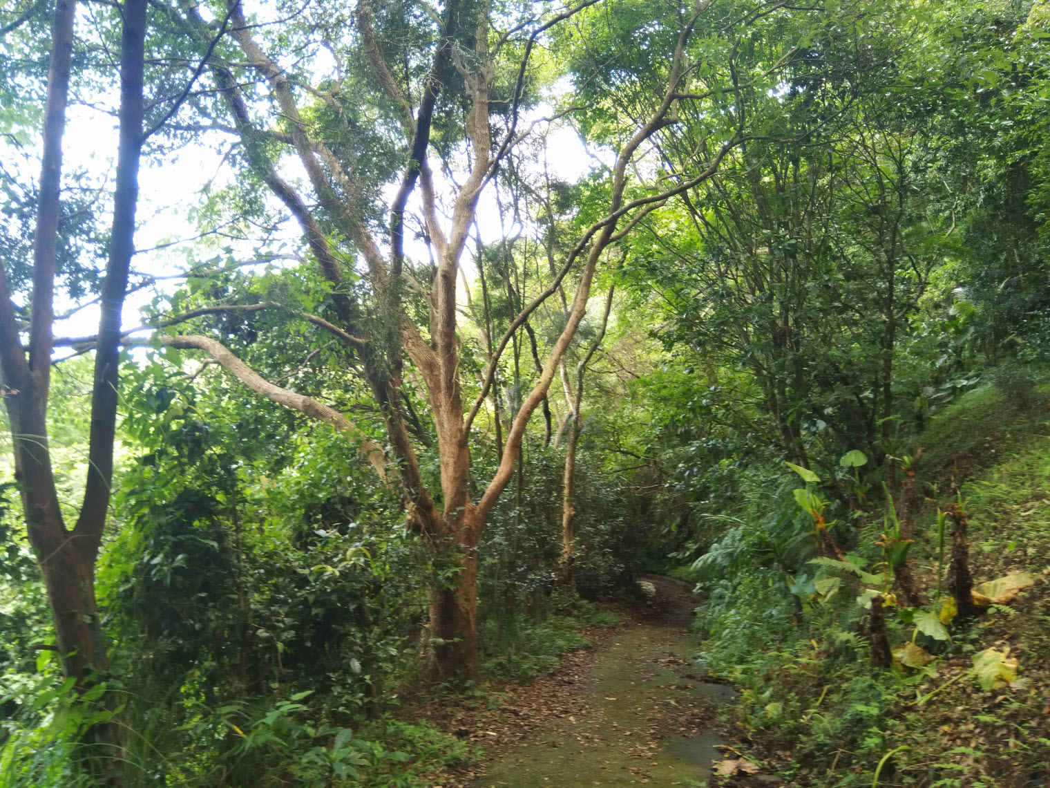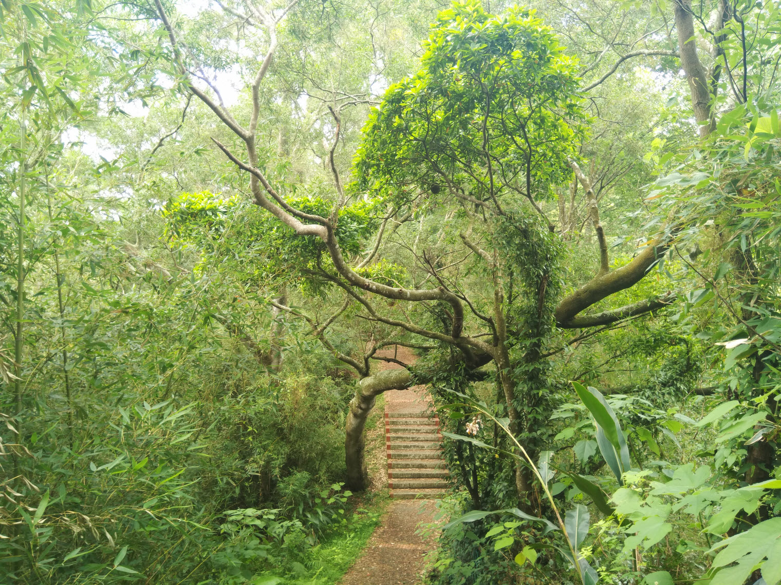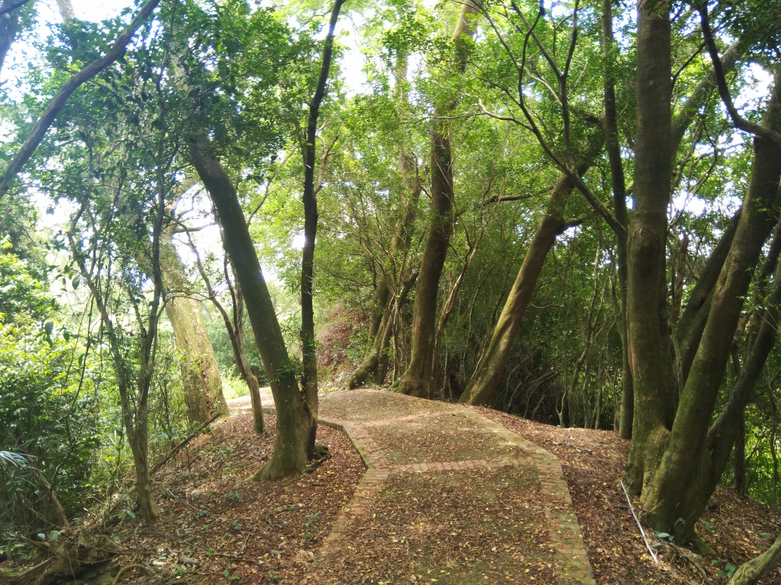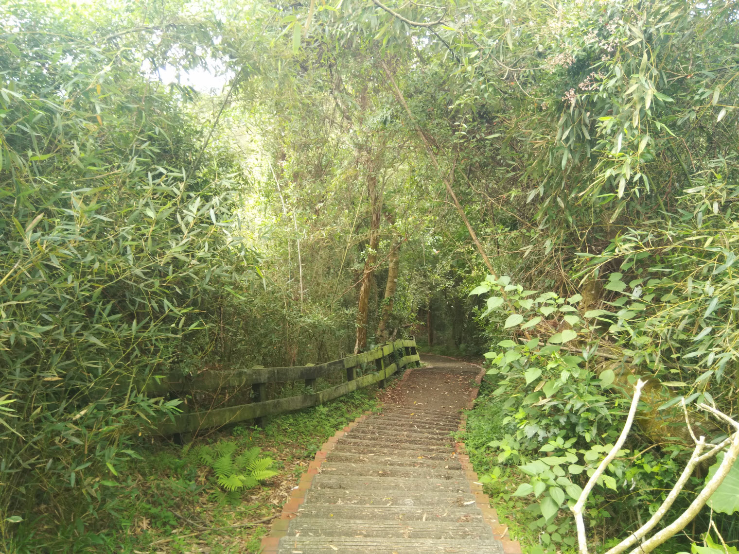 步道為人工鋪設,雖然當天接近晌午時分但有林蔭遮蔽