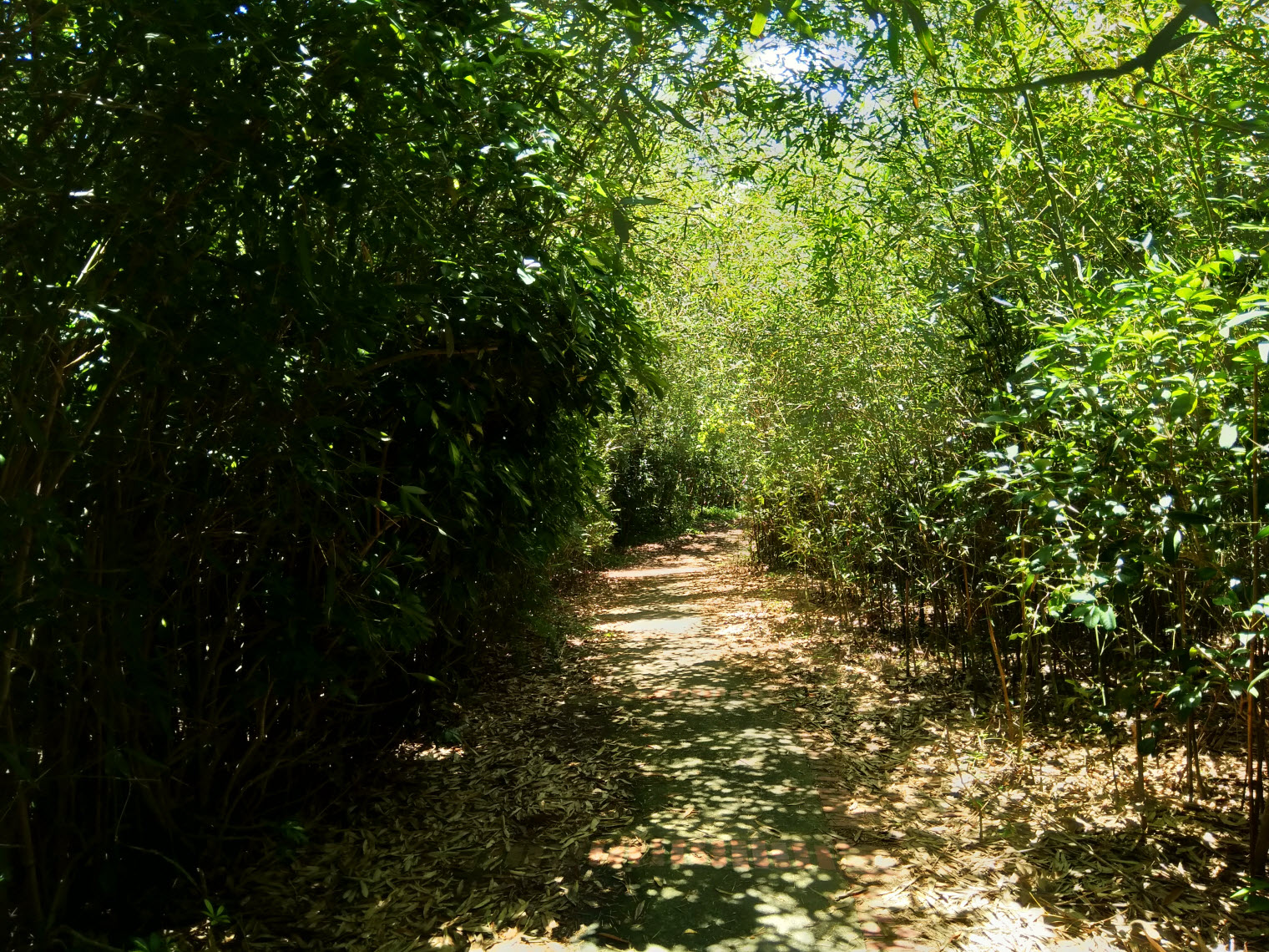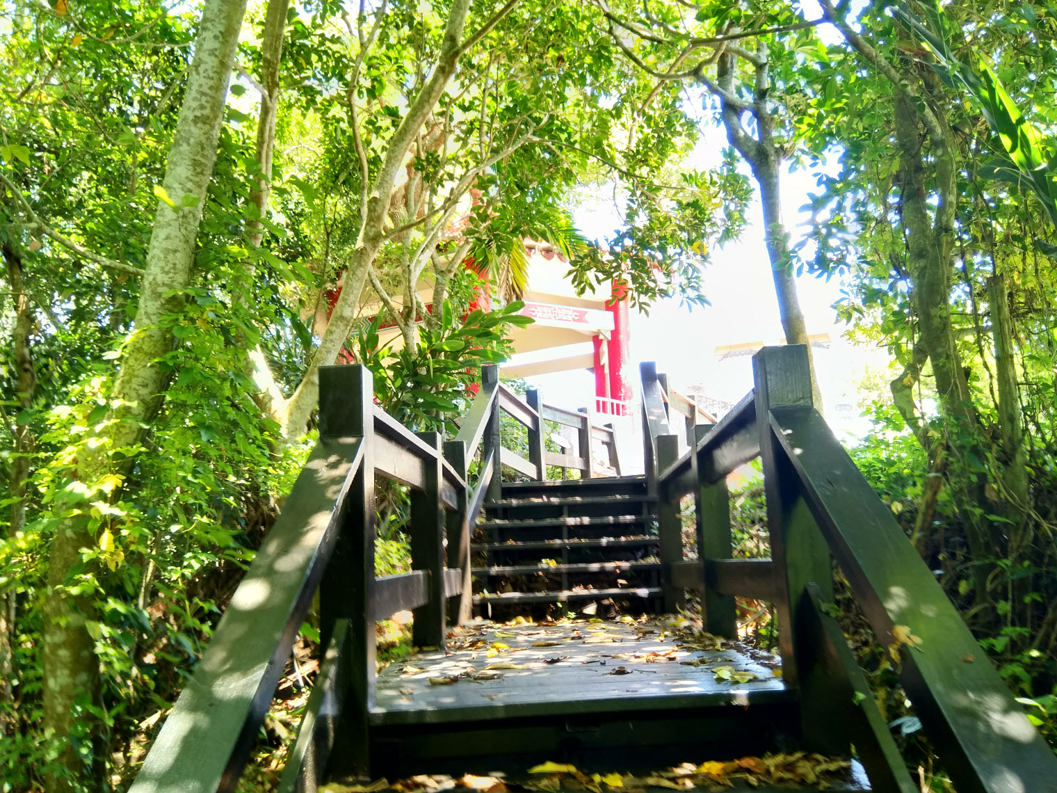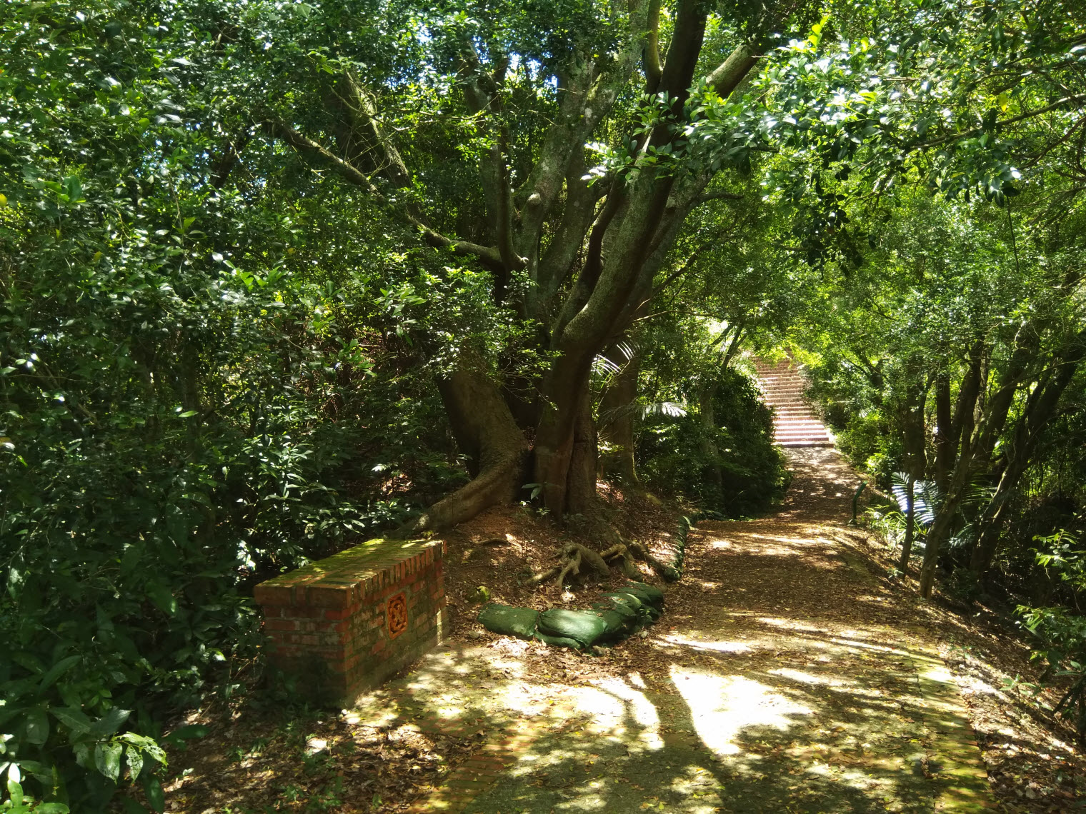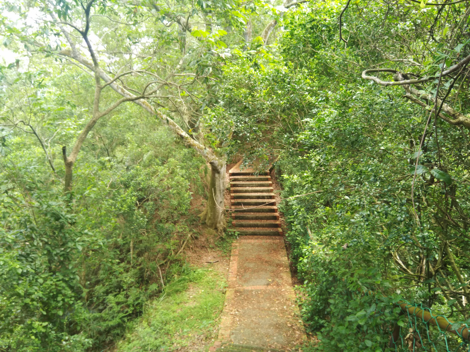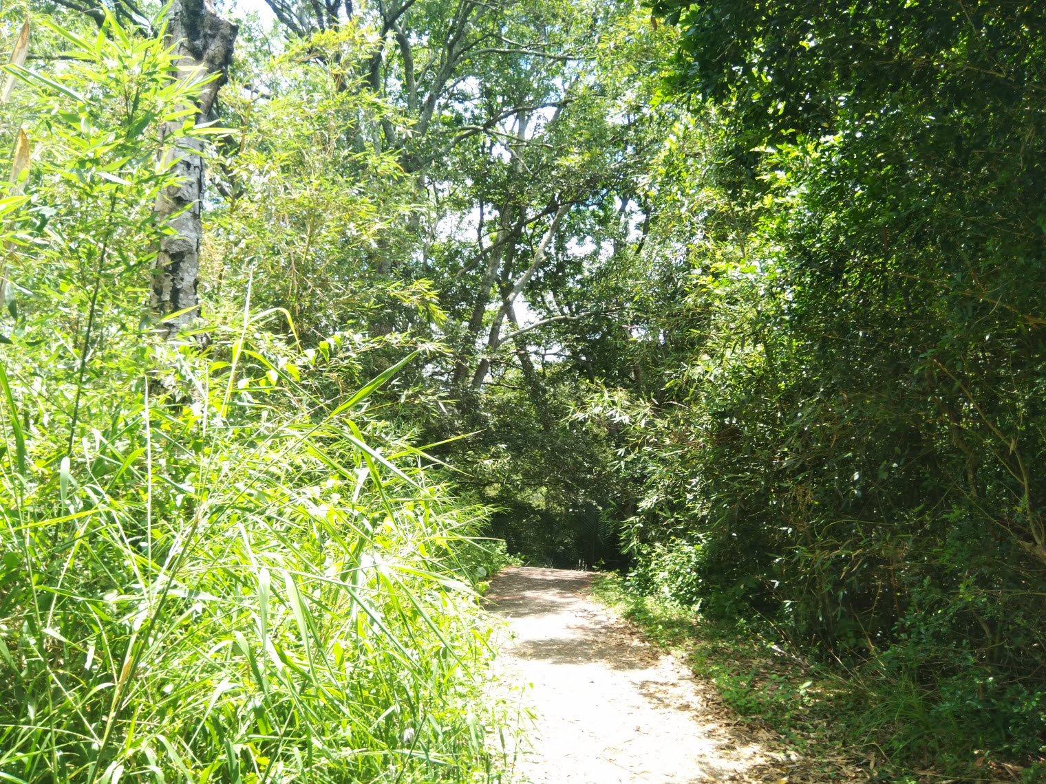 步道為人工鋪設,雖然當天接近晌午時分但有林蔭遮蔽