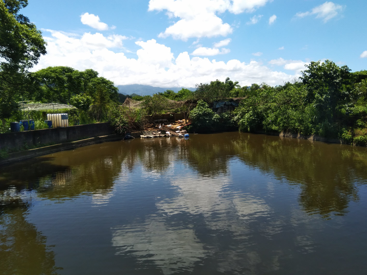 路邊的私人埤塘,有不少鵝群聚集在一旁ㄚㄚ叫