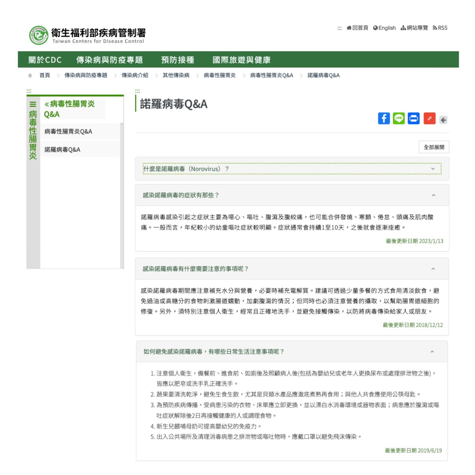疾管署 - 「諾羅病毒 Q&A」