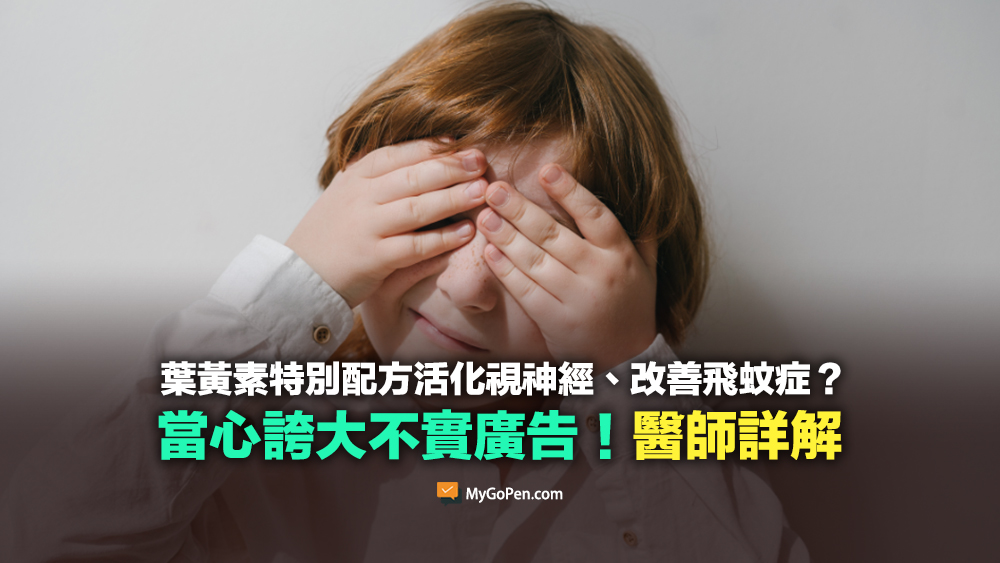 網傳以「專利 NADH 葉黃素」為主題的廣告與貼文,宣稱可改善「眼睛乾澀、視力模糊、流眼油」等狀況,甚至聲稱能「促進視神經再生、改善飛蚊症」。專家表示,視神經退化、飛蚊症分屬不同眼睛部位的問題,民眾若看到聲稱能「一種成分治百病」的產品,應提高警覺。廣告中提到的「乾澀」、「模糊」、「流目油」等字眼,其實只是症狀的描述,並非醫學上的疾病名稱,這類用詞常被用作話術,讓人產生共鳴、誤以為自己需要該產品,同時藉此規避法規限制。呼籲民眾購買相關產品前,應先上網查詢「違規食品、藥物、化粧品廣告民眾查詢系統」、「食藥膨風廣告專區」,以免花大錢沒效果、甚至延誤病情。