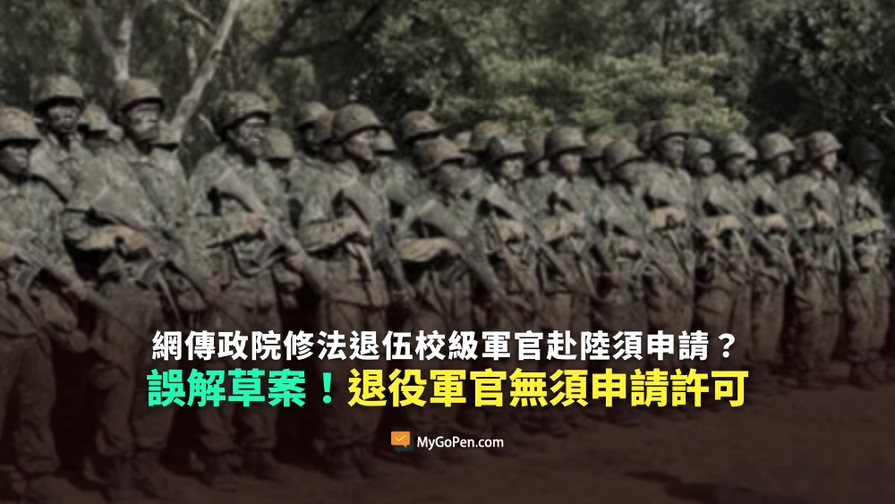 【易誤解】政院修法退伍校級軍官赴陸須申請?誤解草案內容!退役軍官無須申請許可