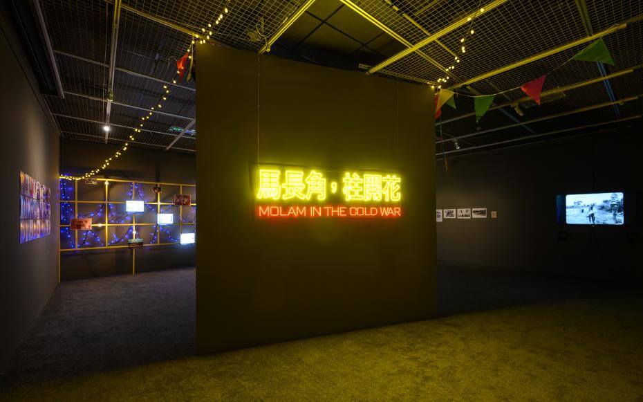 協同策展人 阿堤.穆桑 (Arthit Mulsarn)從冷戰時空的視角切入,以《馬長角,柱開花mdashmdash冷戰下的摩蘭》展示美援與泰國政府的東北發展政策下,推行經濟與硬體建設的開發,原本窮鄉僻壤的村落突然充斥長出犄角的馬兒ndash摩托車,和綻放花朵的柱子ndash電線桿,與此同時當地的摩蘭與外來文化交融出新世代的表演方式、音樂風格及內容,透過展覽現場的影像、聲音及文件,窺見摩蘭新時代的演進歷程。