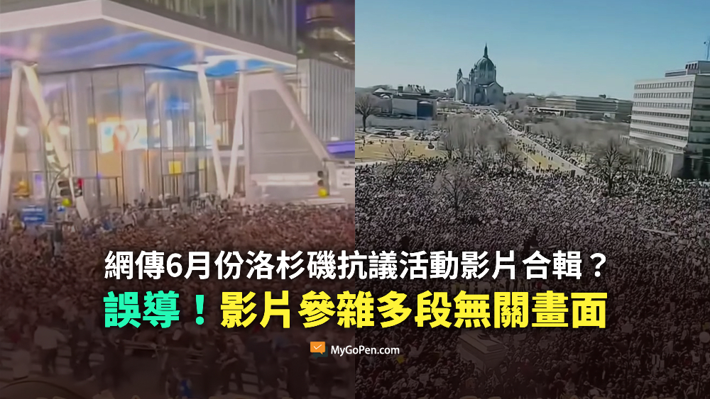 網傳「洛杉磯演義」的影片及訊息,聲稱都是 6 月份洛杉磯抗議活動的片段。經查證,網傳影片由 16 個片段組成,其中兩段並非在洛杉磯拍攝,一段是紐約尼克隊球迷慶祝球隊打進東區決賽,湧入紐約曼哈頓第 7 大道的畫面;另一段是 4 月份明尼蘇達聖保羅(St Paul)的反川普抗議活動。網傳影片混雜不相關的片段,容易造成民眾誤解。