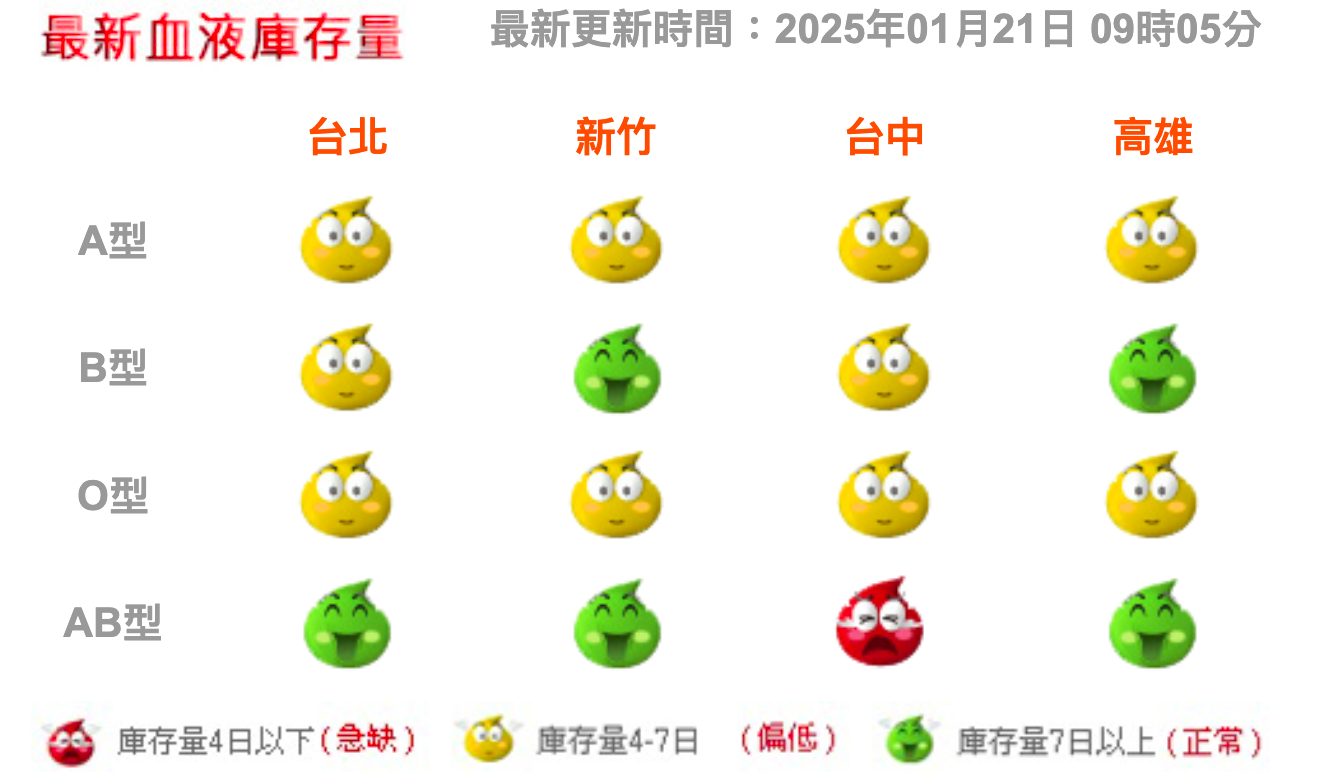 (一)A、B、O、AB 型庫存情況官網即時公布