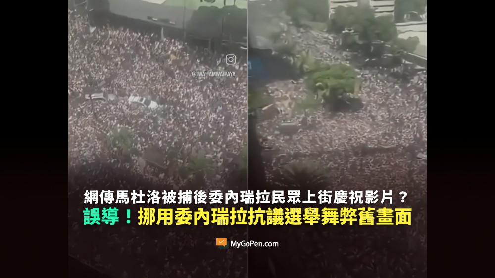 網傳「馬杜洛終於倒下了」的影片及訊息,畫面顯示大批民眾聚集在街上,聲稱是委內瑞拉總統馬杜洛(Nicolas Maduro)於 2026 年 1 月 3 日遭美國逮捕後,委內瑞拉民眾開心慶祝的畫面。經查證,網傳影片拍攝時間為 2024 年 7 月 31 日,當時委內瑞拉剛結束總統大選,馬杜洛竄改選舉結果,宣布自己再度當選,引發反對者不滿,大批民眾上街抗議選舉舞弊。影片地點雖然確實在委內瑞拉,但與 2026 年馬杜洛被捕一事無關,網傳訊息不正確。