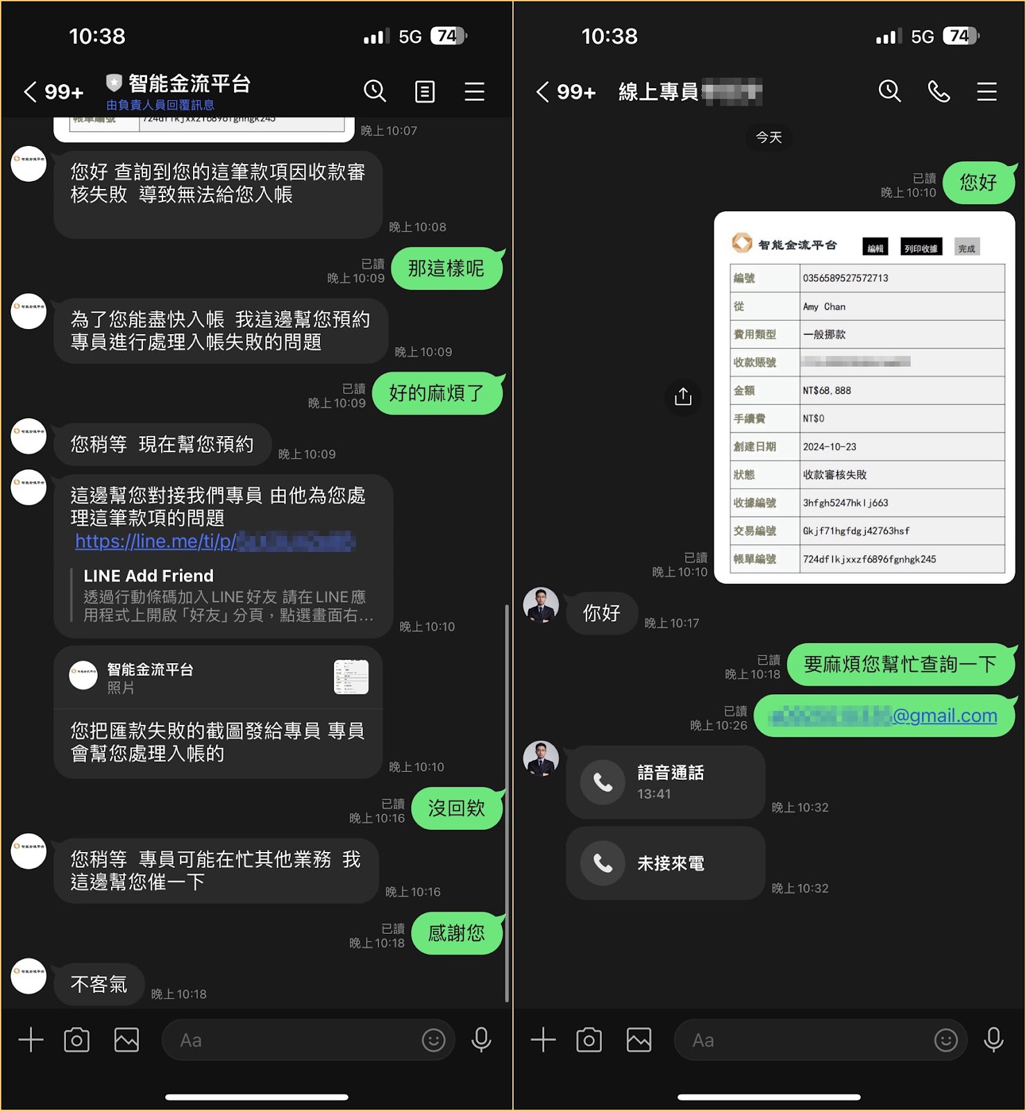 甚至會用 LINE 打電話給你,進行語音通話,最後以協助被害者解除收款失敗或解決帳戶錯誤等理由,使用視訊通話並共享螢幕畫面,要民眾配合操作網銀的動作,匯款到指定帳號,或者是要求寄送個人金融卡到指定地點。