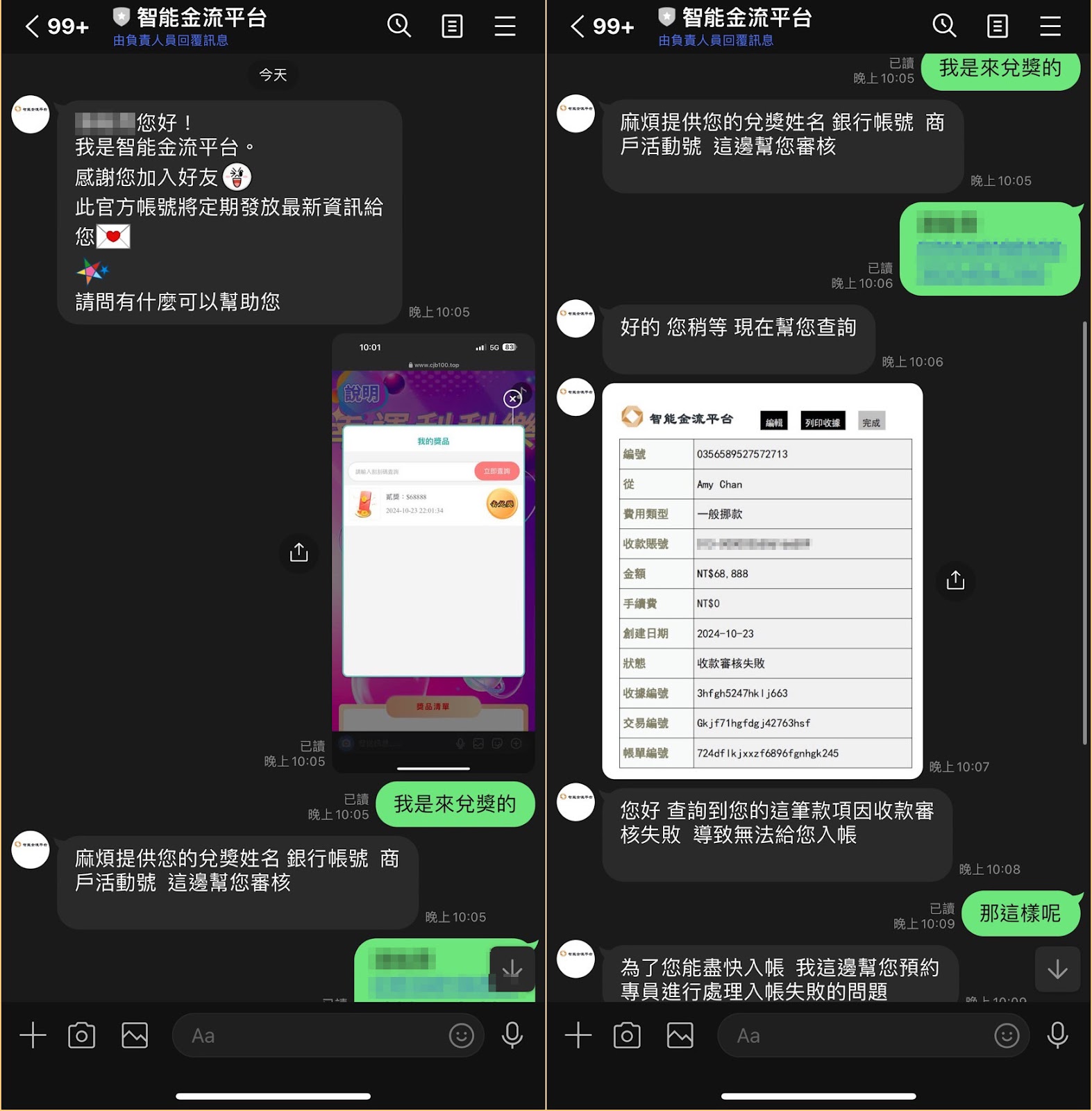 (2)告知中獎、騙取匯款帳戶或加金融專員LINE