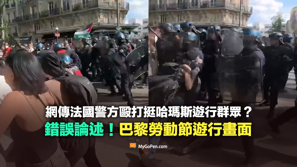 【錯誤】網傳法國警方毆打挺哈瑪斯遊行群眾?不實論述!巴黎勞動節遊行畫面