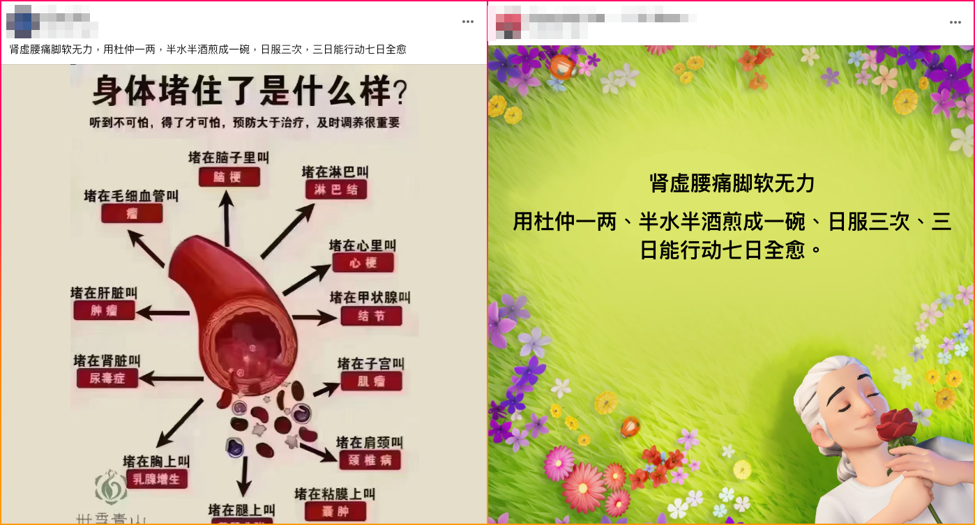 網傳「腎虛腰痛、雙腳無力,可用杜仲治療」的貼文,提到杜仲用水、酒煎煮,喝三天就能行動、七天痊癒。但專家表示,中醫講求「辨證論治」,杜仲針對「肝腎不足」所造成的腿腳無力有效,但傳言說的是「腎虛」、而非「肝腎」,一般民眾難以辨識自己是不是肝腎不足、或是其他問題所造成的下肢無力,傳言並未區分、提醒,網傳內容說法易造成誤導。