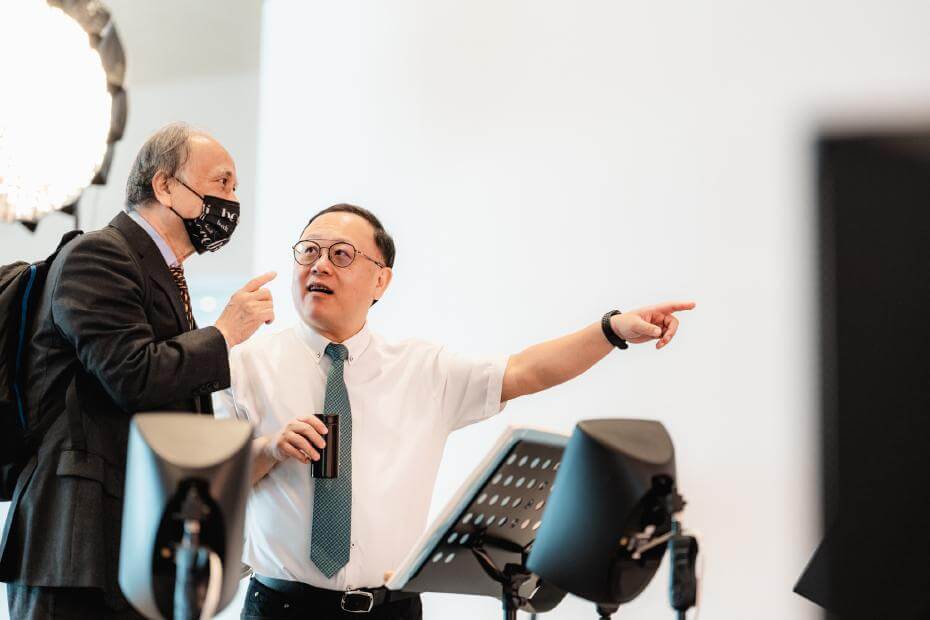 史哲副市長於〈LEARPRINT 〉作品現場與《音響論壇》劉漢盛總編輯分享規劃歷程。圖/高雄市立美術館提供