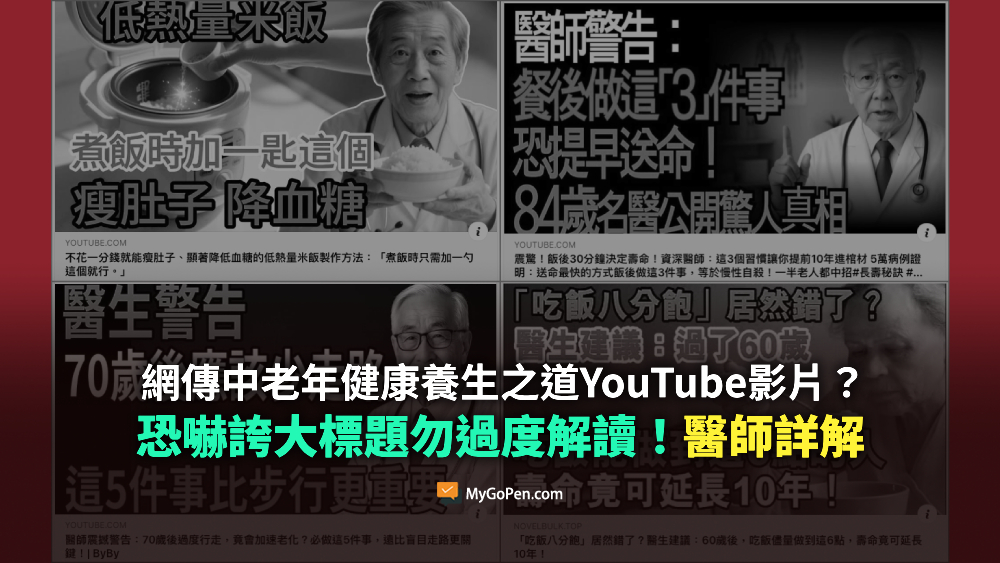 【誤導】網傳中老年健康養生之道YouTube影片?恐嚇誇大標題勿過度解讀!醫師詳解