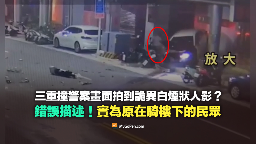 【錯誤】三重撞警案畫面拍到詭異白煙狀人影?不實描述!實為原在騎樓下的民眾