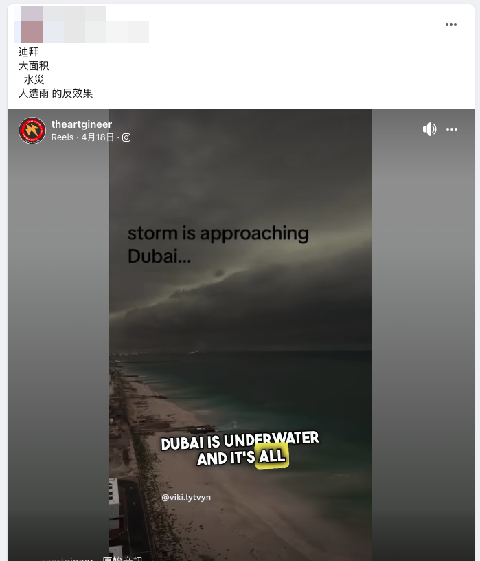 網傳杜拜水災是人造雨反效果的訊息?