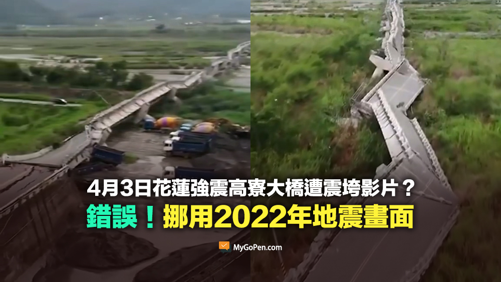【錯誤】4月3日花蓮強震高寮大橋遭震垮影片?挪用2022年地震畫面