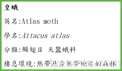 台北市立動物園昆蟲館現正展出季節限定、台灣體型最大的蛾類-皇蛾,錯過9月就要等明年。「皇蛾」這種有趨光性的大型蛾類,雖然廣泛分布在台灣中低海拔,早期在文山區夜晚受指南宮燈光的吸引而來,但現在想在野外發現相對來說卻不是那麼容易。