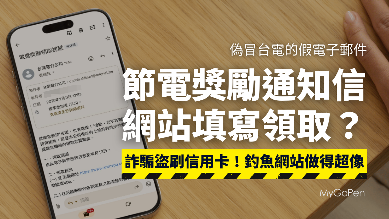 【詐騙】網傳台電寄節電獎勵電郵?填資料領取?釣魚網站騙取信用卡個資