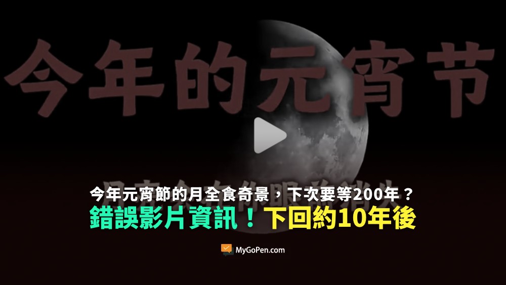 【錯誤】今年元宵節的月全食奇景,下次要等200年?不實影片資訊!下回約10年後