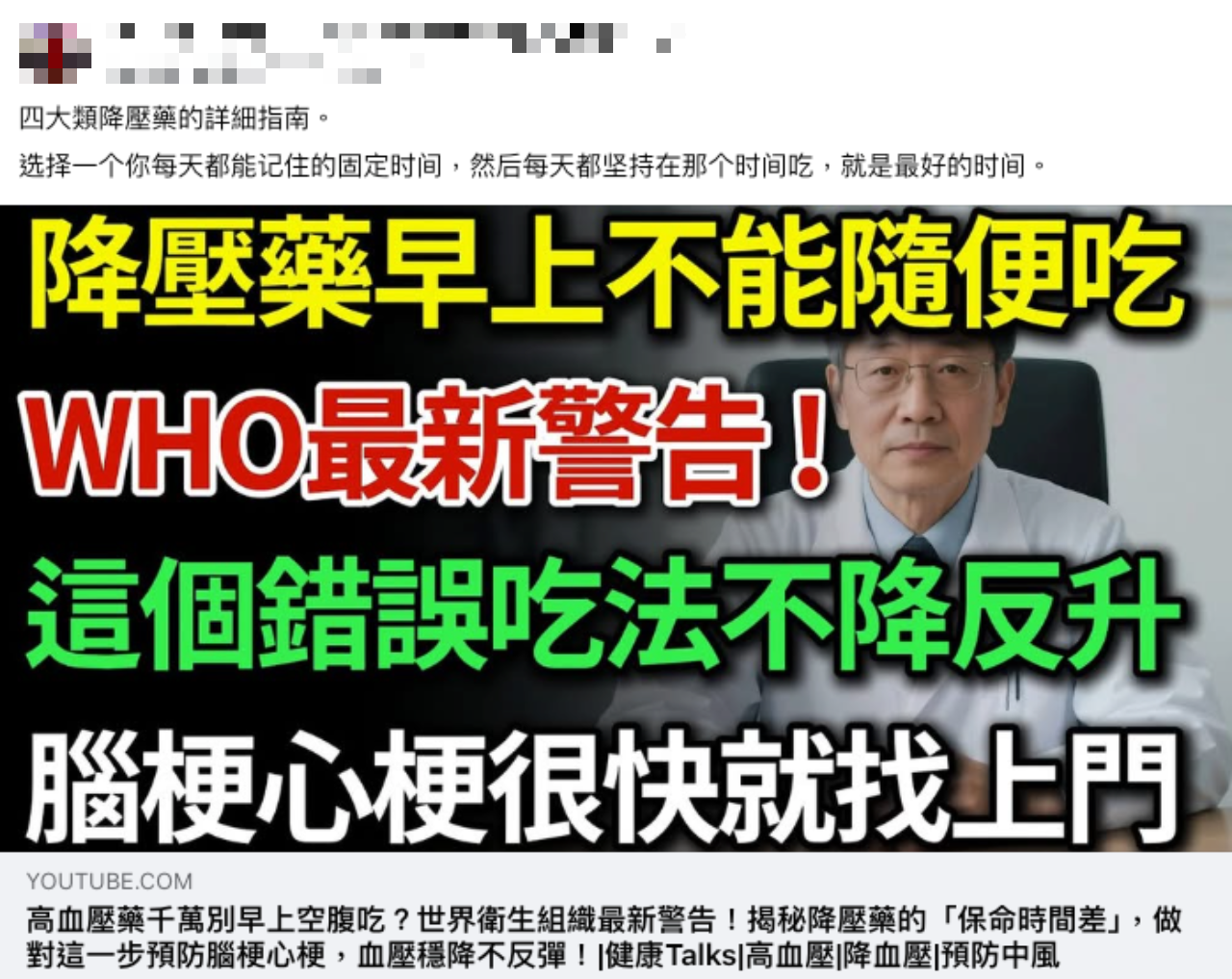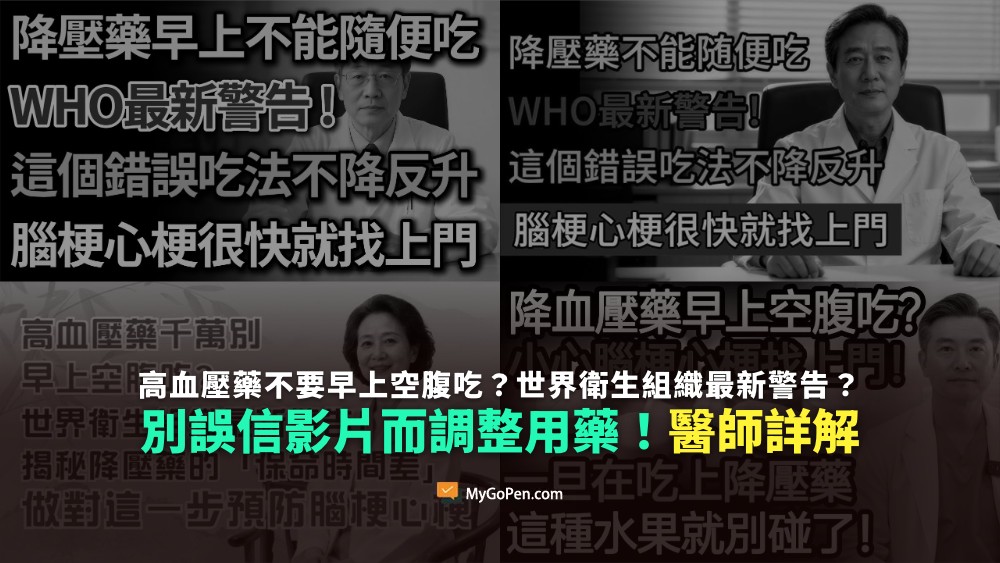 【錯誤】高血壓藥不要早上空腹吃?世界衛生組織最新警告?別誤信影片而調整用藥!醫師詳解
