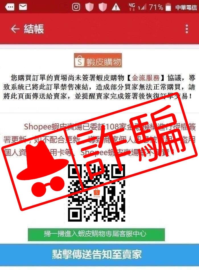【詐騙】蝦皮購物賣家當心!佯裝買家、客服要你掃QR Code誘騙釣魚