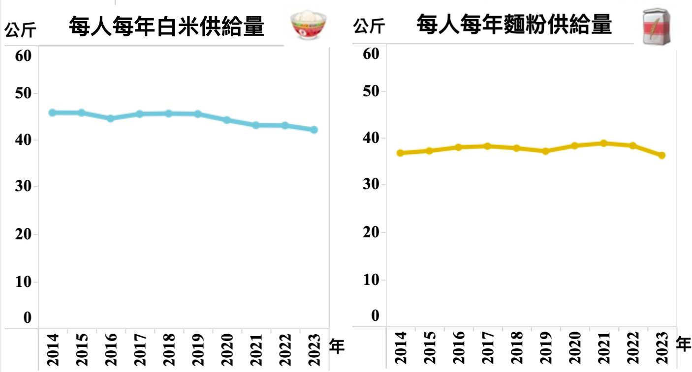 傳言提到「身邊的人越來越喜歡吃麵,越來越不喜歡吃飯」。MyGoPen 查詢農業部官網公開資料,國人每人每年白米消費量由 1981 年時的 98 公斤腰斬,最新的數據每人一年平均不到 45 公斤,相當於每天吃不到一碗飯。蘇秀悅提醒民眾,不管是白飯或是白麵,澱粉類的攝取仍然應該以「全穀雜糧類」作為最好的來源,而如果真的比較喜歡吃麵的人,除了還是要兼顧米飯的攝取量之外,最好能選擇蕎麥麵、日式清湯麵等這些含有比較多膳食纖維、熱量比較低的麵食,而少吃蔥油餅、鍋貼等又油又鹹又精緻的麵食。