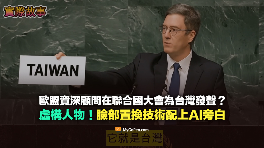 【錯誤】歐盟資深顧問在聯合國大會為台灣發聲?虛構人物!臉部置換技術配上AI旁白