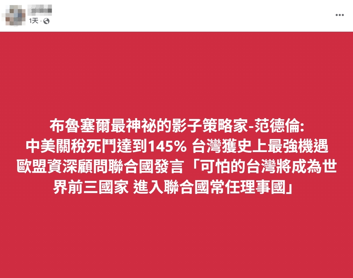 布魯塞爾最神祕的影子策略家-范德倫 中美關稅死鬥達到145% 台灣獲史上最強機遇 歐盟資深顧問聯合國發言「可怕的台灣將成為世界前三國家 進入聯合國常任理事國」